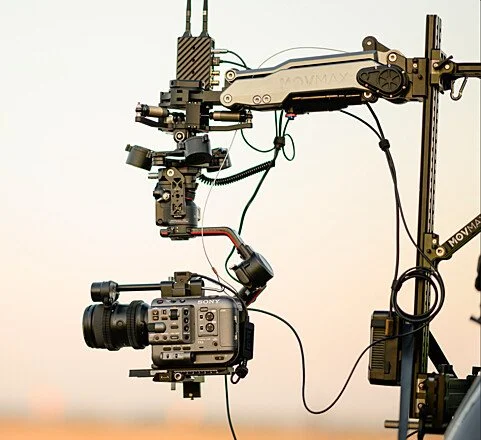 The Movmax stabilizing arm allows us to achieve smooth and stable camera movements. By eliminating unwanted vibrations and ensuring precise control, it enhances the overall quality of our shots. We also have several mounting options, with the two primary setups being either front- or rear-mounted. We most often pair the system with Sony cameras, which offer accurate autofocus and a wide range of lenses.