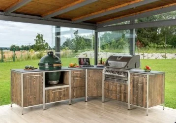 Rustikální venkovní grilování (pronájem GreenEgg, masivní stůl)