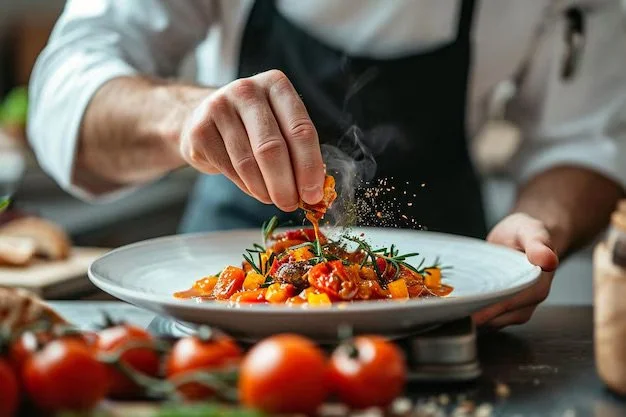 Šéfkuchař v kuchyni – s vážným výrazem nese hotový pokrm, kouká na hodinky, které ukazují například čas podávání jídla (stejný jako cílový čas Evky)
